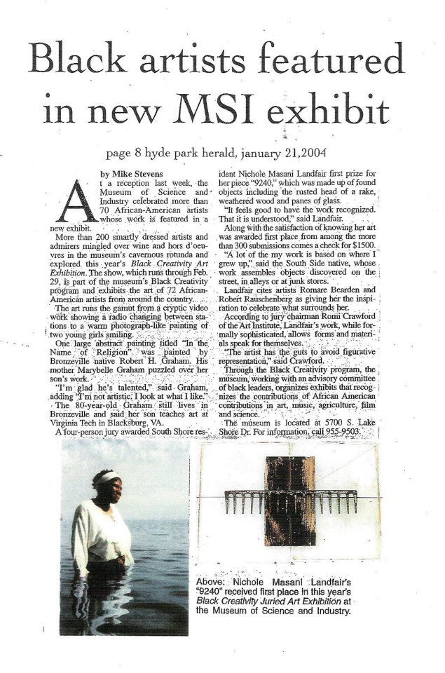 Winner of the 2004 Museum of Science and Industry Black Creativity Juried Exhibition.