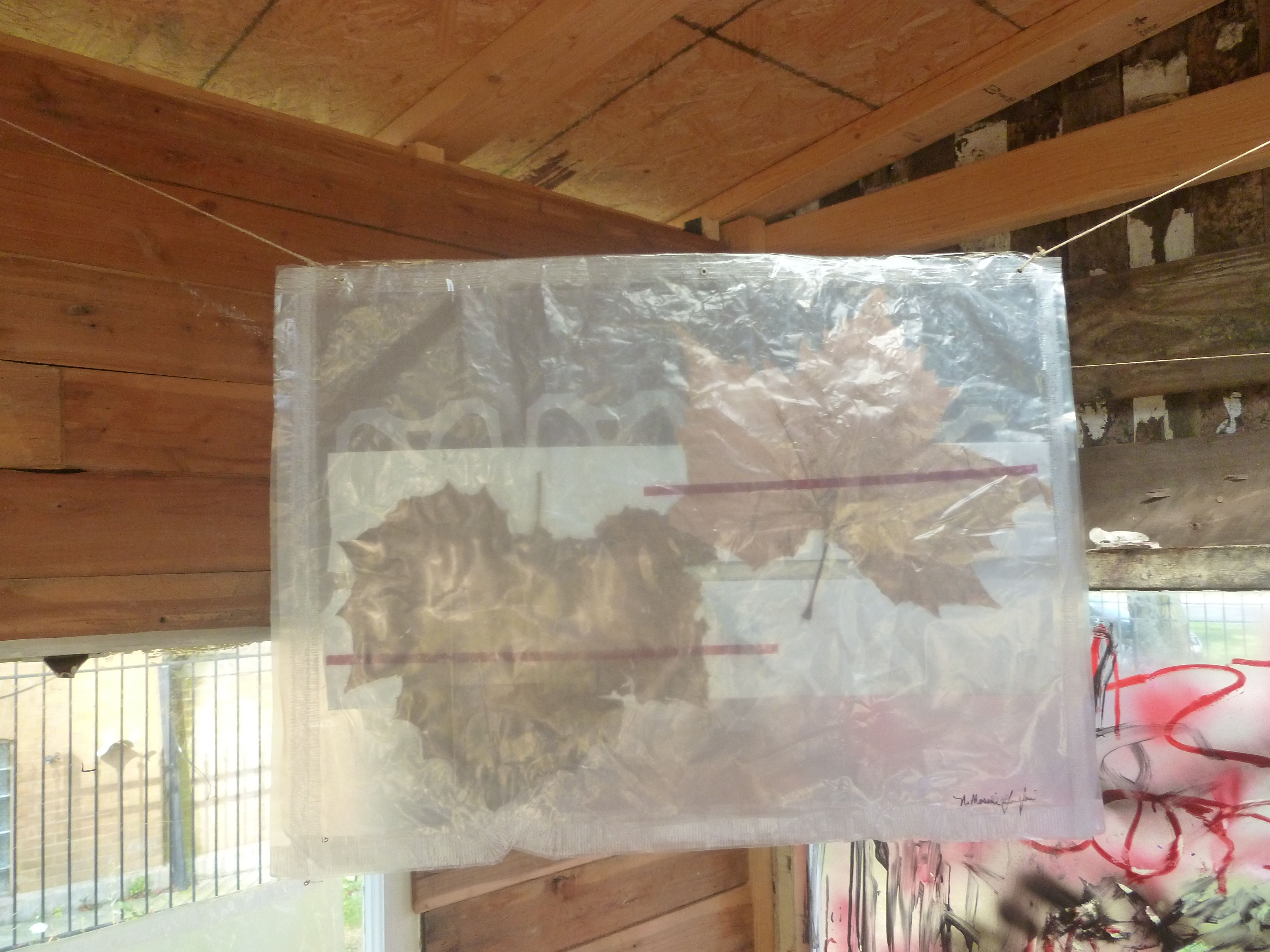 With this series I look at how people utilize plastic for entertainment and convenience. As art, the plastic in this work has a value for its creation through me as the artist, otherwise it is something that is thrown away. I enclosed leaves and seed pods as contrast to the plastic packaging materials and as I creating them I felt I was blocking the natural process of compost for these materials, thus giving weight to the idea of how much waste is created for pleasure. Here I reverse the idea and create art to provoke literacy in Sustainability.