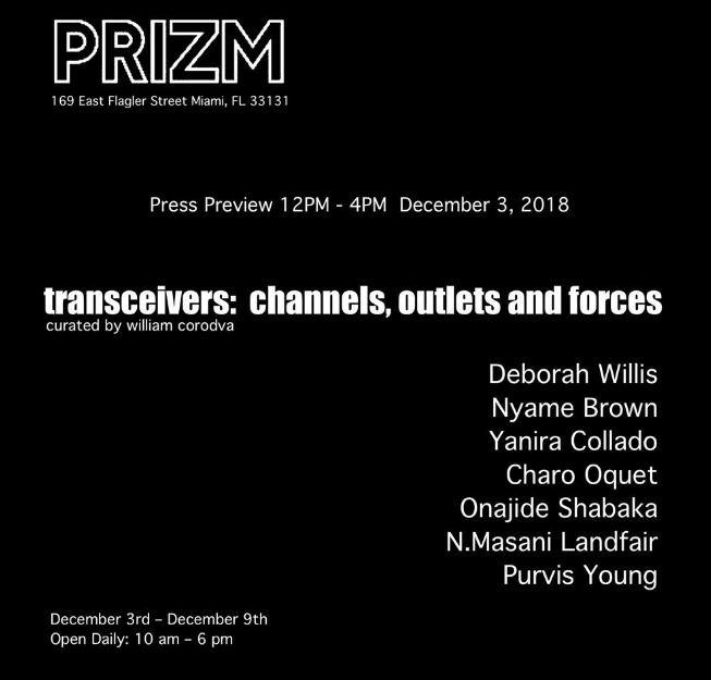 Exhibiting Artists: Nyame Brown, Yanira Collado, Deborah Willis, Charo Oquet, Onajide Shabaka, N.Masani Landfair and the late Purvis Young have a shared agency that their work embodies; cultural, social, political, and spiritual currencies.